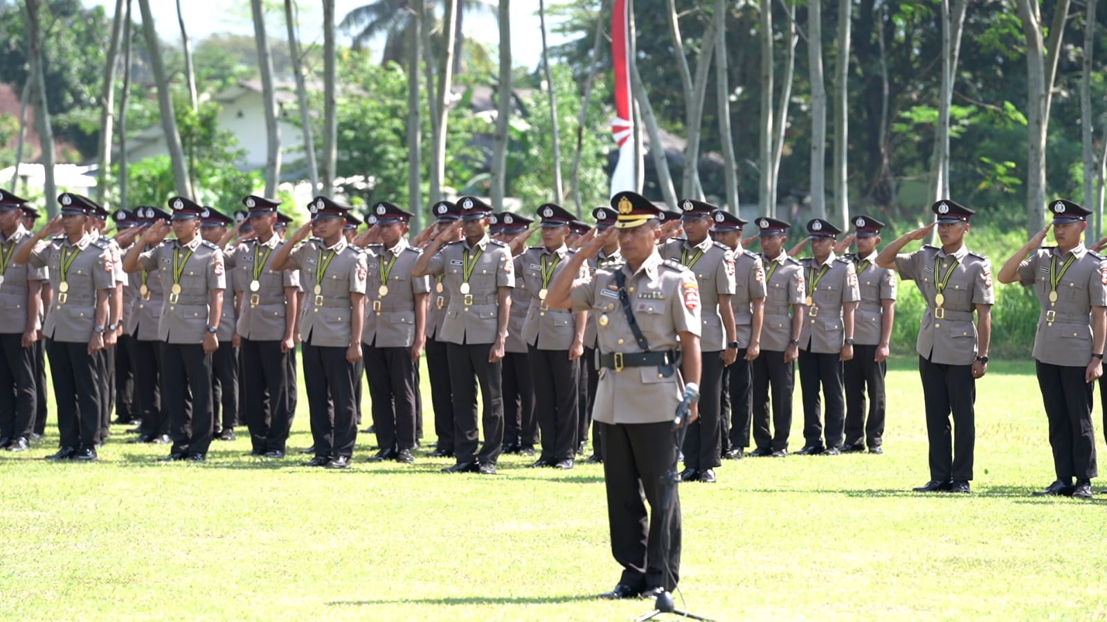 Upacara penutupan pendidikan bakomsus untuk mengawal visi Ketahanan Pangan dan program MBG yang dicanangkan Presiden Prabowo Subianto berlangsung di dua lokasi, sesuai tempat mereka menimba ilmu dasar kepolisian. Untuk polwan, digelar di Sepolwan Lemdiklat Polri, Ciputat, Jakarta Selatan pada Rabu (4/6/2025), dan untuk polisi laki-laki di Pusdik Binmas Lemdiklat Polri, Banyubiru, Ungaran, Jawa Tengah (Jateng).
